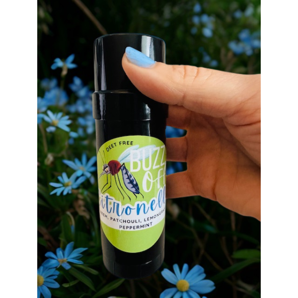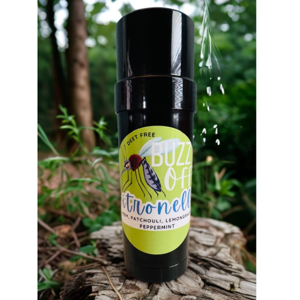 Ingredients: Sweet almond oil, beeswax, essential oils (citronella, patchouli, peppermint, lemongrass, neem)