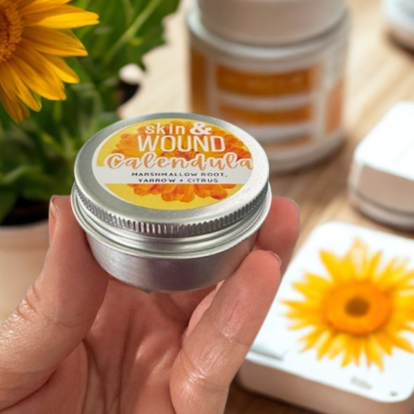 How it was born: I went to the dermatologist for my yearly and ended up getting a skin tag removed. When she told me how to care for it, she said to keep it moist, with a band aid covering. My reply was, "Like with Neosporin?". She said absolutely not. She said American's have been taught wrongly about the use of Neosporin. It is made for treating an infection, since it is an antibiotic cream. I didn't need antibiotics since I didn't have an infection. This got me thinking and it all made sense. I did some research on herbs that were good for healing the skin in many different ways and this product was produced! Now, when my kids come to me needing a band aid, this is the only thing I reach for and know they will be healing with nature and no chemicals. My household nickname for it is "Natures Neo". Three of my cabinets are stocked with a full box of band aids, a tin of this product, ready to go for the crazy life of kid ouchies!